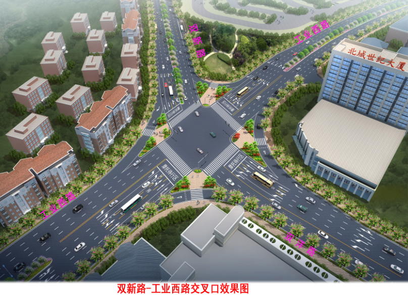 雙新路(工業(yè)西路-城北小學(xué))項(xiàng)目位于龍巖市城區(qū)的中西部,起于工業(yè)西路與雙洋路交叉口,終于青云路,沿線經(jīng)謝洋保障房、城北中、小學(xué)、龍州工業(yè)園區(qū)廠區(qū),是交易城通往龍州工業(yè)園區(qū)廠區(qū)的一條便捷通道,道路全長(zhǎng)1179米,寬34米,總投資約6.5億元。項(xiàng)目的建成對(duì)進(jìn)一步擴(kuò)大城區(qū)范圍,帶動(dòng)沿線土地開(kāi)發(fā),解決城北中、小學(xué)交通,促進(jìn)龍州工業(yè)園區(qū)發(fā)展、完善路網(wǎng)格局具有重要意義。