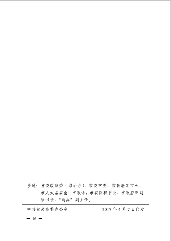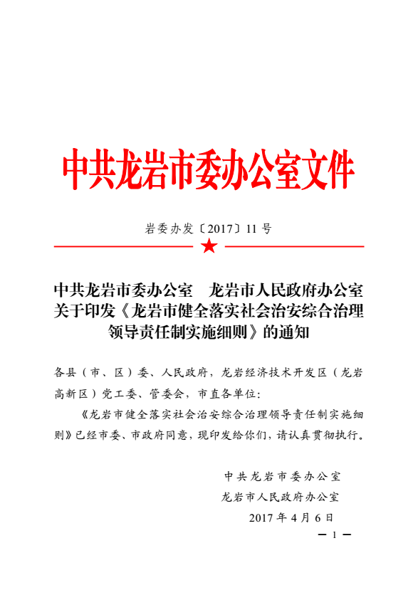 龍巖市健全落實社會治安綜合治理領導責任制實施細則(巖委辦發【2017】11號)