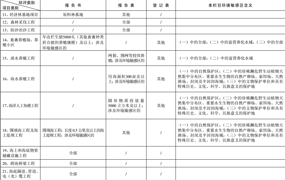 涉及環境敏感區的建設項目,應當嚴格按照本名錄確定其環境影響評價類別,不得擅自提高或者降低環境影響評價類別。環境影響評價文件應當就該項目對環境敏感區的影響作重點分析。