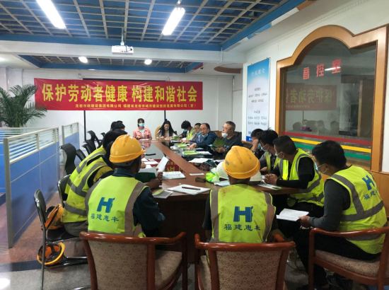 2020425日至51日是全國第18個(gè)《職業(yè)病防治法》宣傳周。為深入宣傳貫徹《職業(yè)病防治法》,進(jìn)一步普及職業(yè)病防治知識(shí),提高一線工人自我防護(hù)意識(shí)和能力,切實(shí)保護(hù)一線工人的職業(yè)健康權(quán)益。根據(jù)市國資委和城發(fā)集團(tuán)相關(guān)工作部署,428日上午,公司分管安全副總經(jīng)理修海金及質(zhì)安部人員深入在建項(xiàng)目開展職業(yè)病宣傳活動(dòng)。